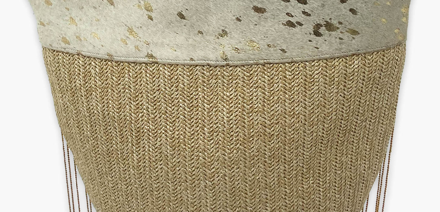 Crafted in a textured raffia fabric, the Savoya shopper combines a natural, lightweight feel with the sophistication of metallic gold leather handles. The upper panel is made from our signature hair–on leather, elevated with subtle gold splashes that add luminosity and texture to the design.